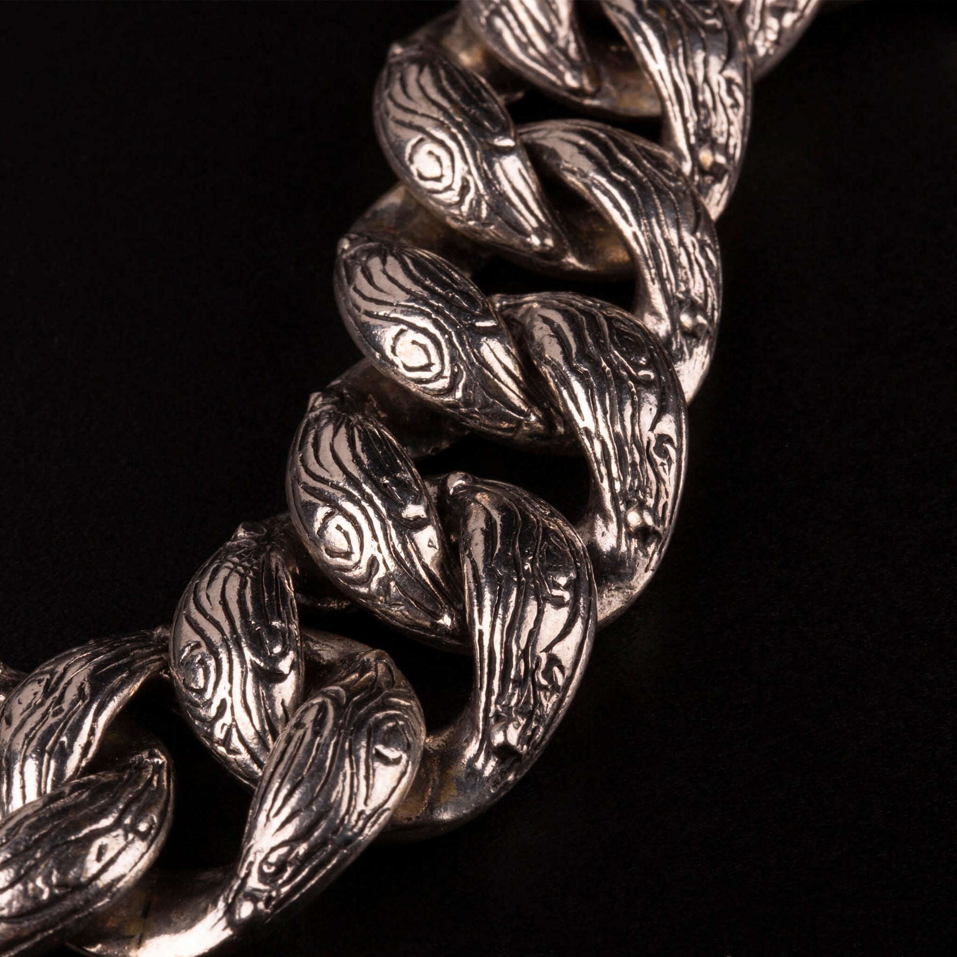 Massiccio, vissuto, senza tempo. Il bracciale "Wooden Groumette" nasce dalla fusione tra due mondi: la solidità del metallo e il respiro antico del legno.